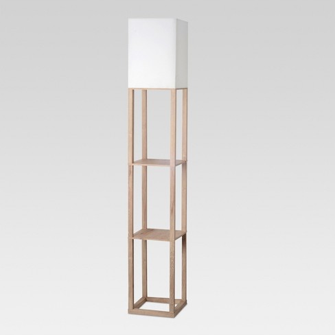 Bring soft ambient light to your living space with the threshold shelf floor lamp with paper shade.